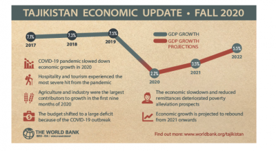 Tajikistan’s economy to expand by 3.5 percent in 2021, says the Word Bank report