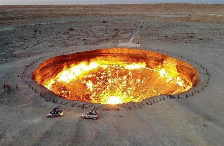 Дабы не допустить экологическую катастрофу, геологи подожгли кратер, полагая, что в нем быстро закончится топливо. Однако, кратер, более известный, как «Врата ада» горит вот уже более 50 лет, а его составляют около 69 метров в ширину, и 30 в глубину.