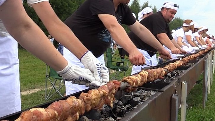 Неожиданно, но именно в Казахстане был приготовлен самый длинный мясной кебаб (шашлык). Это чудо кулинарии было представлено на оценку экспертам книги рекордов в городе Макинск в 2018 году. При измерении изделия было обнаружено, что оно насчитывает 223 метра и 65 сантиметров.