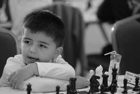 На фото: чемпион Душанбе 2014 года по шахматам Джалолиддин Ильхоми (8 лет).