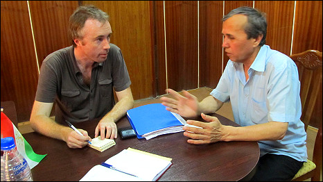 На фото: журналист Би-Би-Си Алан Куортли на встрече с Урунбоем Усмоновым в СИЗО УГКНБ Согда
