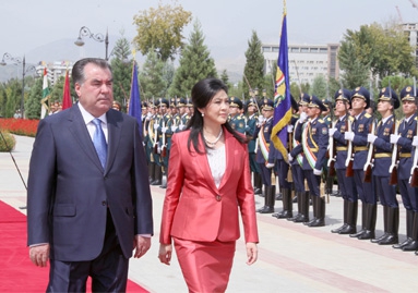 Президент Таджикистана Эмомали Рахмон принял премьер-министр Таиланда Йинглак Шинаватра, прибывшую в Душанбе 19 августа с официальным визитом.