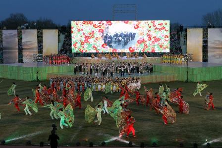 В этом праздничном представлении были задействованы более 7 тыс. человек, выступили известные таджикские мастера искусств.