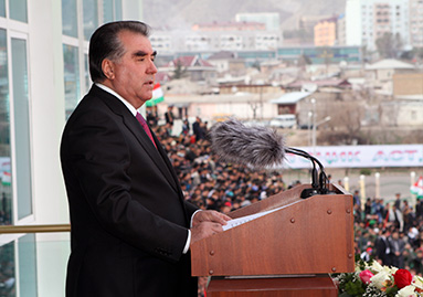 Накануне вечером на стадионе «20-й годовщины независимости Таджикистана» в Худжанде, который вмещает более 25 тыс. зрителей, Э. Рахмон принял участие в театрализованном представлении в честь международного праздника Навруз