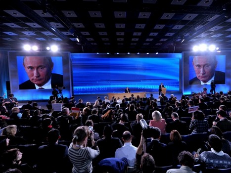 В прошлом году глава государства общался с представителями СМИ - впервые после переизбрания президентом - не в Кремле, а в Центре международной торговли в Москве.