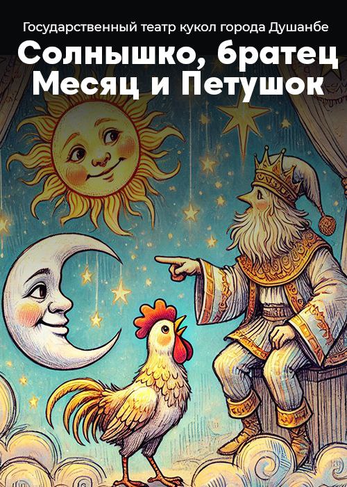 В Государственном республиканском театре кукол «Лухтак» 1 июня в 11:00 состоится показ детского спектакля Ш. Киямова «Солнышко, братец Месяц и Петушок» в постановке режиссёра Зафара Джавадова.