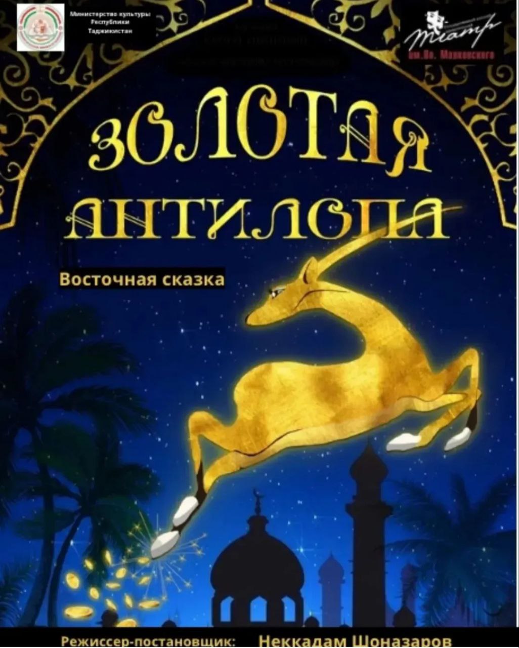 В Государственном русском драмтеатре им В. Маяковского 1 июня в 11:00 по случаю Дня защиты детей состоится премьера спектакля «Золотая антилопа» Неккадама Шоназарова, по мотивам одноимённой сказки о мальчике, спасшем волшебную антилопу, которая в благодарность помогает ему избавиться от преследований злого и жадного раджи.