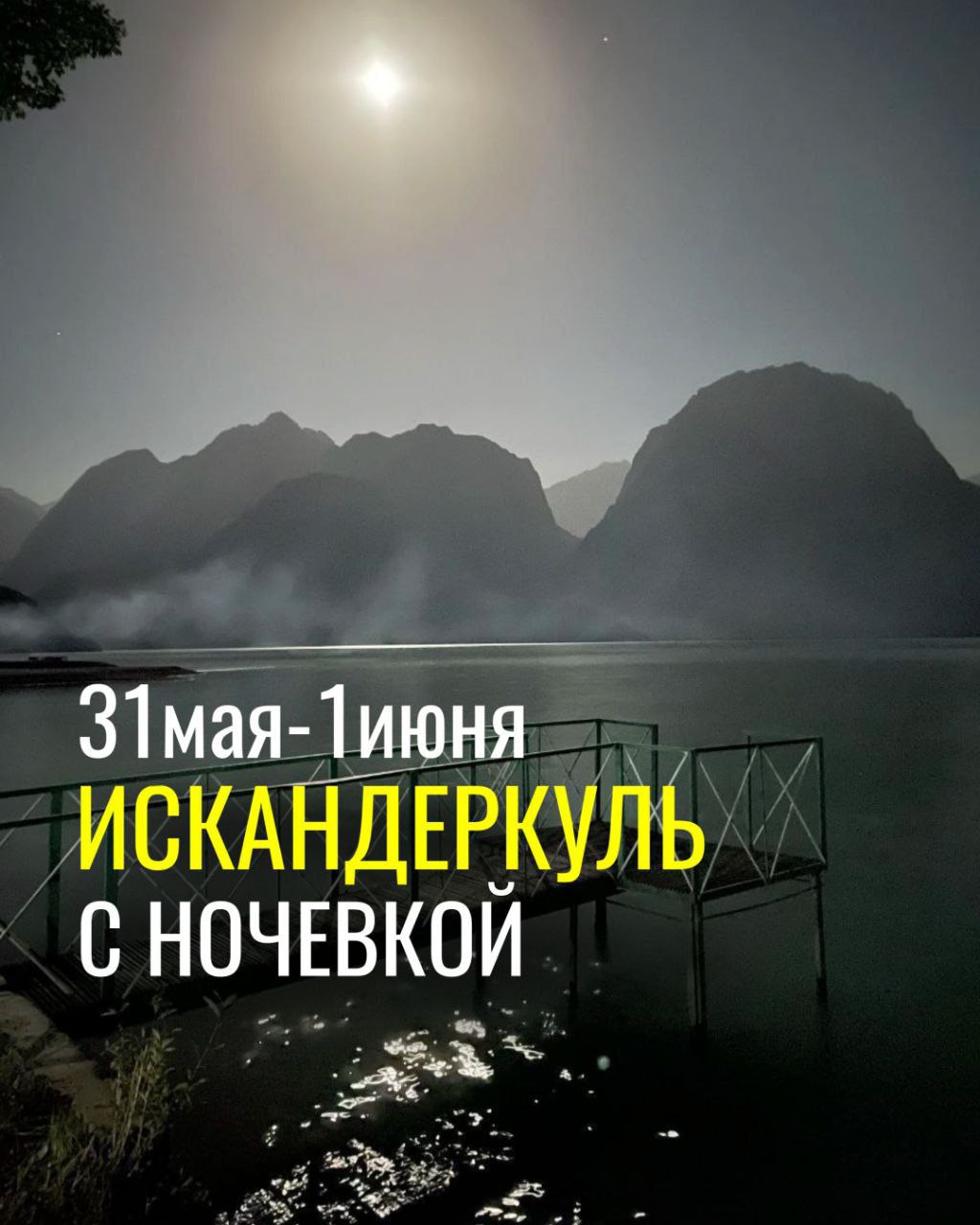 Амир Исаев в эти выходные 31 мая-1 июня предлагает поездку с ночёвкой к жемчужине Фанских гор – красивейшему озеру Искандеркуль. В программе первого дня посещение озёр Искандеркуль и Змеиного озера, а также 50-ти метрового водопада, а вечером ужин, костёр и живая музыка. На следующий день - поездка к пещере Буцефала и посещение источников.