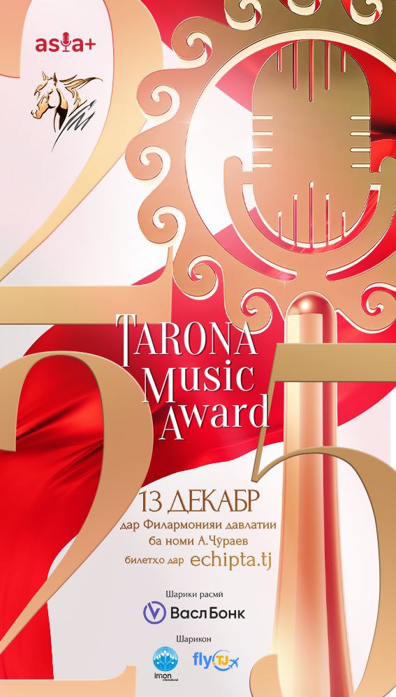 В Государственной филармонии им. А. Джураева 13 декабря в 17:00 пройдёт главное событие этого года – традиционная церемония награждения Tarona Music Award 2025 от радио «Азия-Плюс». Вас ждёт незабываемый вечер в атмосфере праздника и музыки, где выступят артисты и звезды отечественной эстрады, лучшие из которых будут награждены. Будут специальные гости. Погрузитесь в мир музыки и станьте частью этого яркого события!