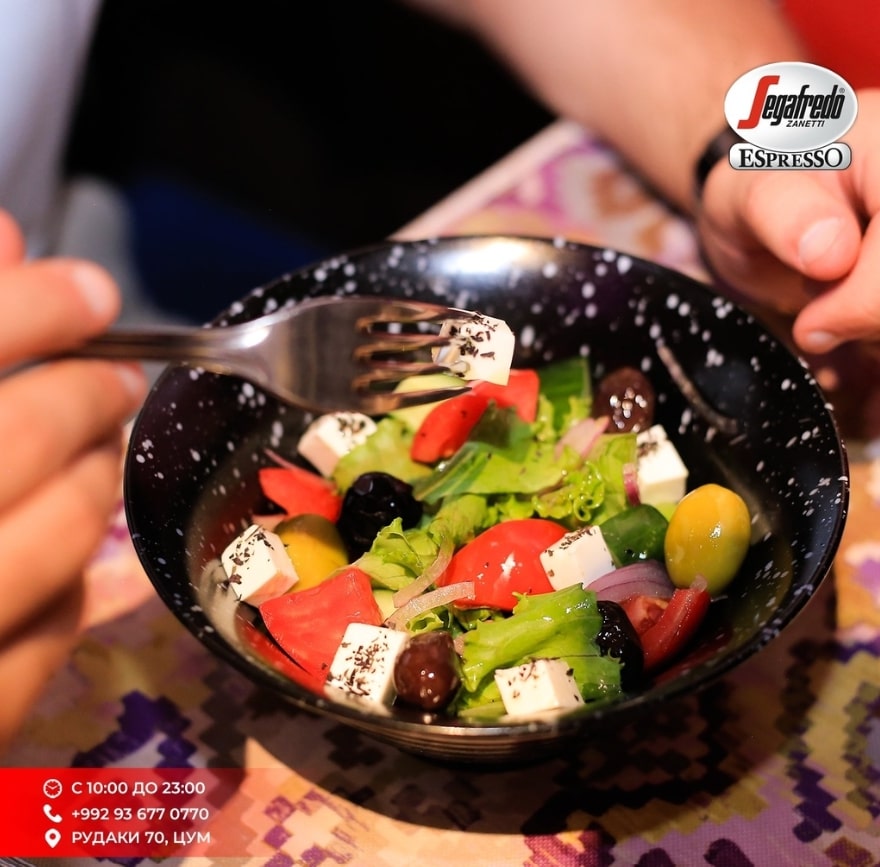 Это популярное кафе в центре Душанбе давно стало излюбленным местом для встреч за чашкой ароматного итальянского кофе. В Segafredo подают блюда европейской и итальянской кухни, где можно насладиться легкими закусками, свежими салатами с изысканными сырами и аппетитными десертами.