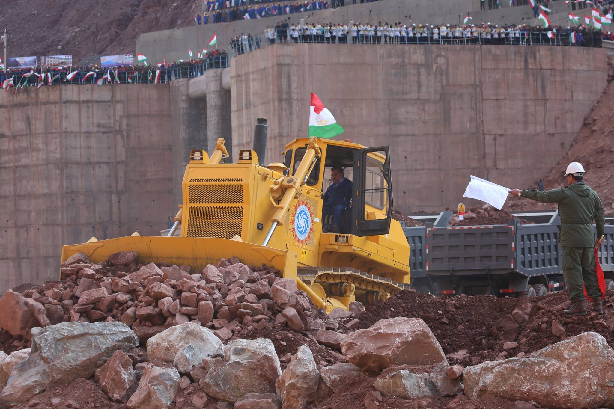 Президент Эмомали Рахмон лично участвовал в перекрытии Вахша за рулем бульдозера. Надо отдать должное его вкладу в завершение «стройки века» - без его настойчивости и политической воли пуск Рогуна вряд ли стал бы возможным.