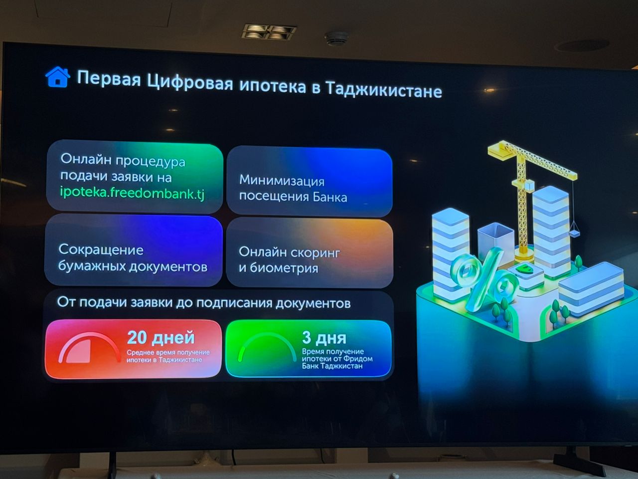 Freedom Bank заявил, что запускает первую полностью цифровую ипотеку в Таджикистане. Подать заявку можно онлайн, пройти скоринг и биометрию — тоже онлайн, а сам процесс оформления почти не требует бумажных документов.