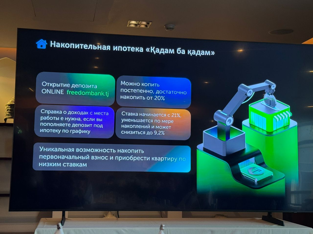Одной из главных новинок станет инвестиционная валюта Freedom, которая появится уже в следующем году. Если сейчас кэшбек начисляется в сомони, то в 2026 году станет доступен особый формат кэшбэка: оплачивая покупки картой банка, клиент получит не обычные бонусы, а валюту, являющуюся эквивалентом ценной бумаги. По сути, повседневные расходы автоматически превратятся в небольшой инвестиционный портфель.