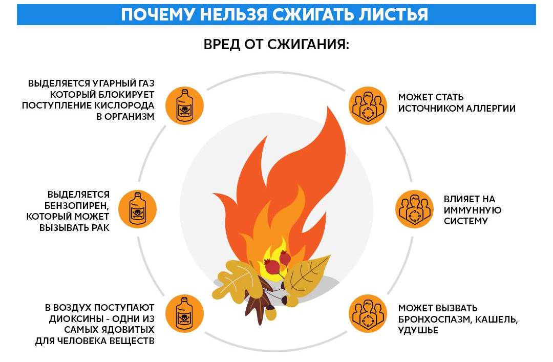 Экологи утверждают, что 70% вредных составляющих вырываются на свободу при сжигании осенней опавшей листвы.