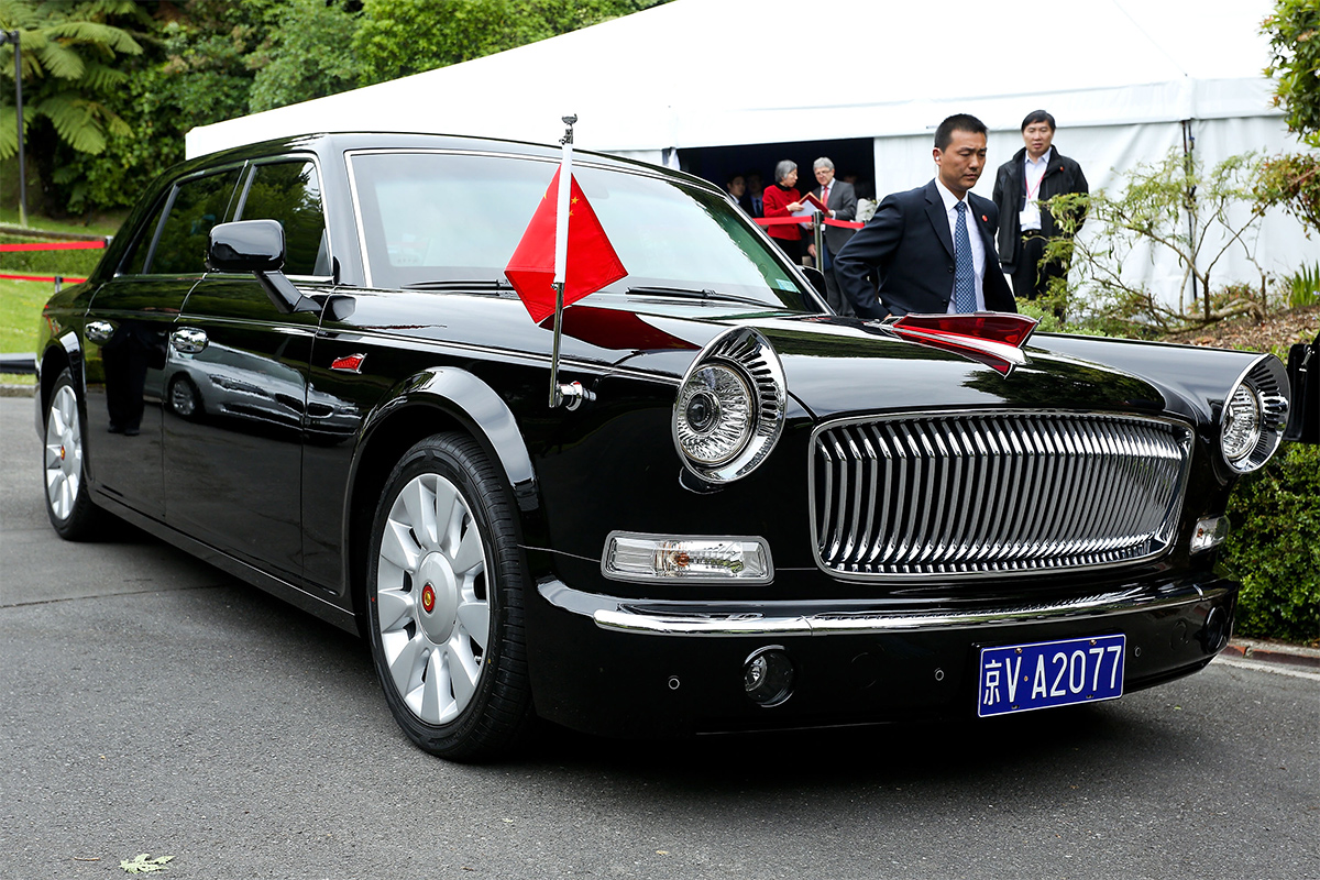 Председатель КНР Си Цзиньпин передвигается на авто отечественного производства. Флагманский лимузин создан компанией Hong Qi, что в переводе означает «красный флаг», автомобиль выполнен в ретростиле и внешне напоминает любимую нами «Чайку». Производство автомобиля держится в строжайшем секрете, его оснащенность по части безопасности, к сожалению, неизвестна, но технические характеристики доступны.