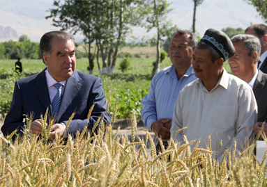 Далее Э. Рахмон посетил хозяйство Барги гул в Пенджикенте и ознакомился с достижениями его дехкан по выращиванию зерновых и картофеля.