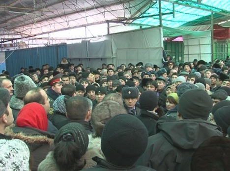 ДО 12 часов большая часть продавцов продолжала стоять на рынке. Выяснилось, что в это время на территории рынка представители местных властей, налоговой инспекции и правоохранительных структур за закрытыми дверями проводили совещание. Через некоторое время было объявлено, что по всем возникшим вопросам в 15 часов того же дня в здании Хукумата г. Чкаловска будет проведено расширенное собрание с участием чиновников и продавцов рынка.