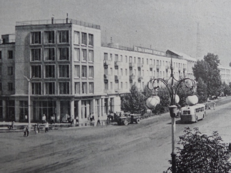 1963 год. На площади Путовского вместо снесенного Универмага № 1 построено новое здание. Архитектор В. Афанасьев, инженер В. Передерий. И уже это здание стало одним из символов нашего детства, точно также как школа, родной дом, являющиеся некими материальными составляющими нашего бытия и сознания. Наш долг хранить эти символы для нас самих и последующих поколений.