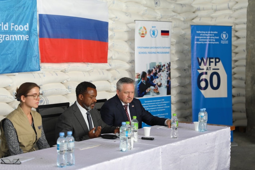 Посольство России в Таджикистане и Всемирная продовольственная программа ООН (ВПП) в ходе торжественной церемонии передали Министерству образования и науки Таджикистана 1552 тонны обогащенной пшеничной муки и 67 тонн желтого гороха в рамках реализации национальной Программы школьного питания в районах республиканского подчинения (РРП), Хатлонской области и Горно-Бадахшанской автономной области (ГБАО). Еще 135 тонн желтого гороха доставлено в Согдийскую область.