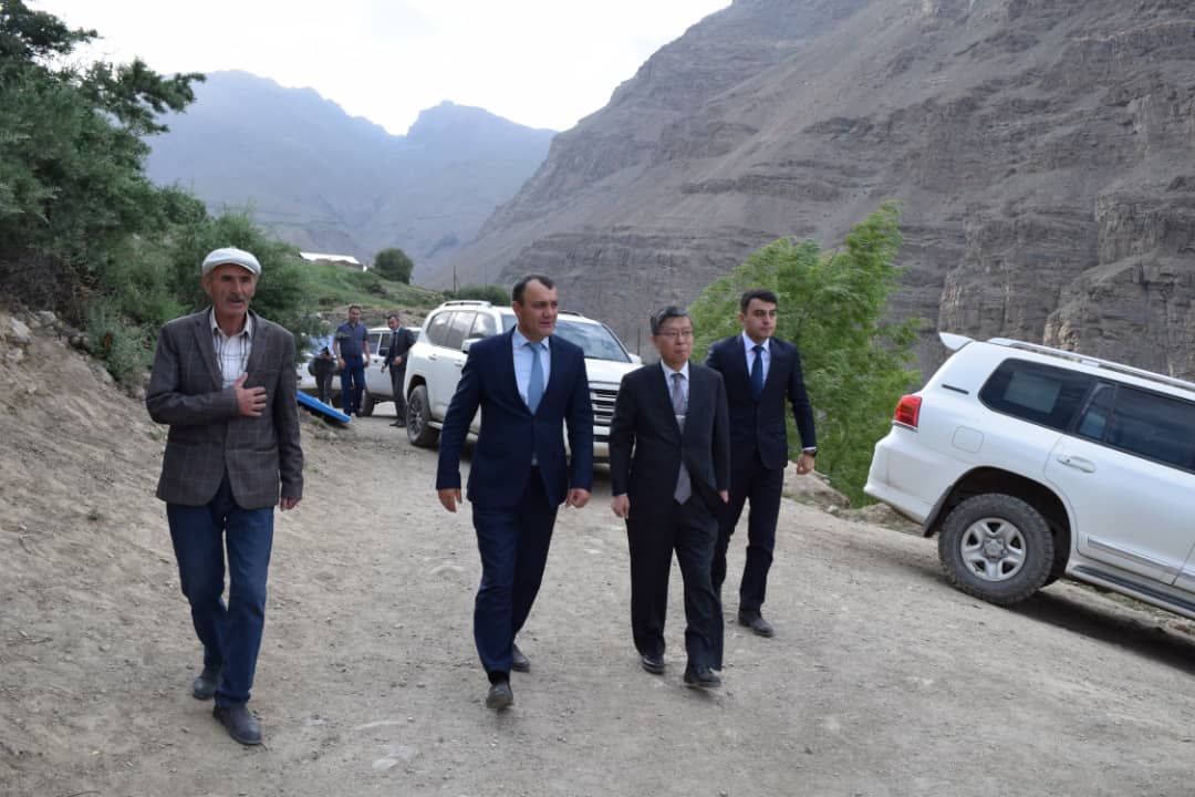 Чрезвычайный и Полномочный Посол Японии в Таджикистане Тоcихиро Аики вместе с министром энергетики и водных ресурсов Далером Джума и Аъзамом Шомирзозода - председателем Рошткалинского района, приняли участие в церемонии завершения «Проекта по восстановлению дорог в селах Хичих и Синдев Рошткалинского района».