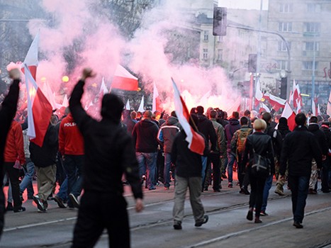 Год назад в день независимости польские националисты также организовали марш. Заметив кабину охранника рядом с российским посольством, они атаковали ее. В результате полиция задержала несколько человек.