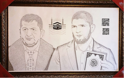 Кладовщик из Казани написал портрет Хабиба Нурмагомедова и его отца хадисами и сурами из Корана