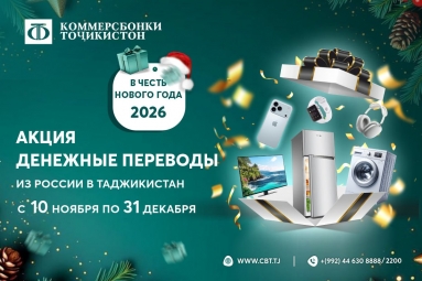 «Коммерцбанк Таджикистана» запускает праздничную новогоднюю акцию для получателей денежных переводов из России.